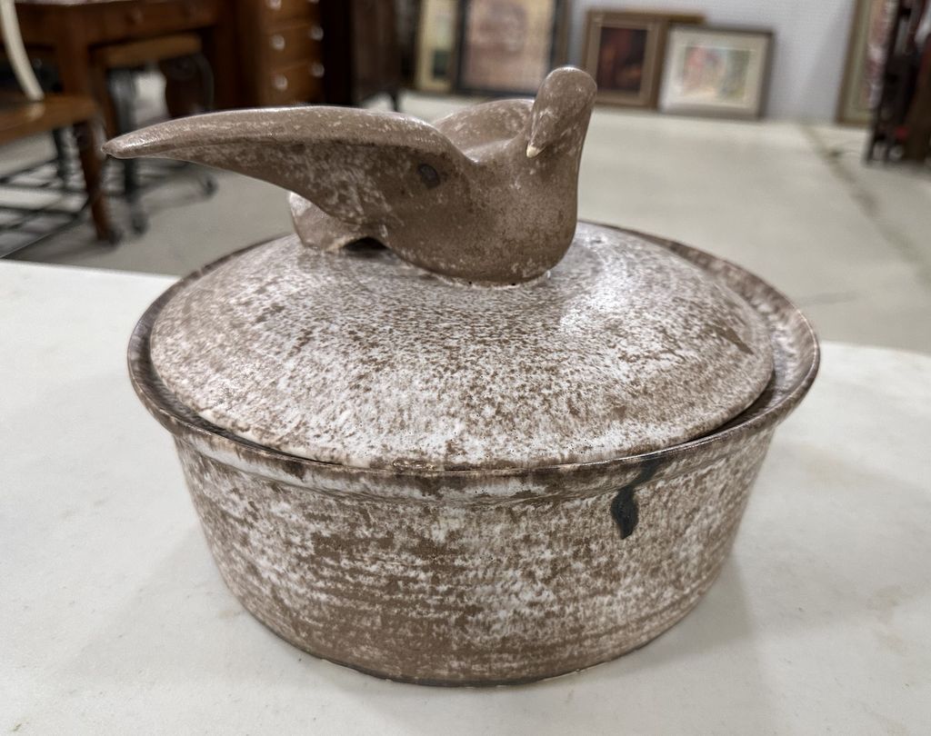 McCarty Signed Nutmeg Dove Pottery Bowl, 4"h., 10"dia, Location Behind Screen McCarty Signed Nutmeg Dove Pottery Bowl, 4"h., 10"dia, Location Behind Screen