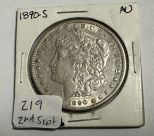 1890-S Morgan Silver Dollar, AU, paper case, Location Safe 1890-S Morgan Silver Dollar, AU, paper case, Location Safe