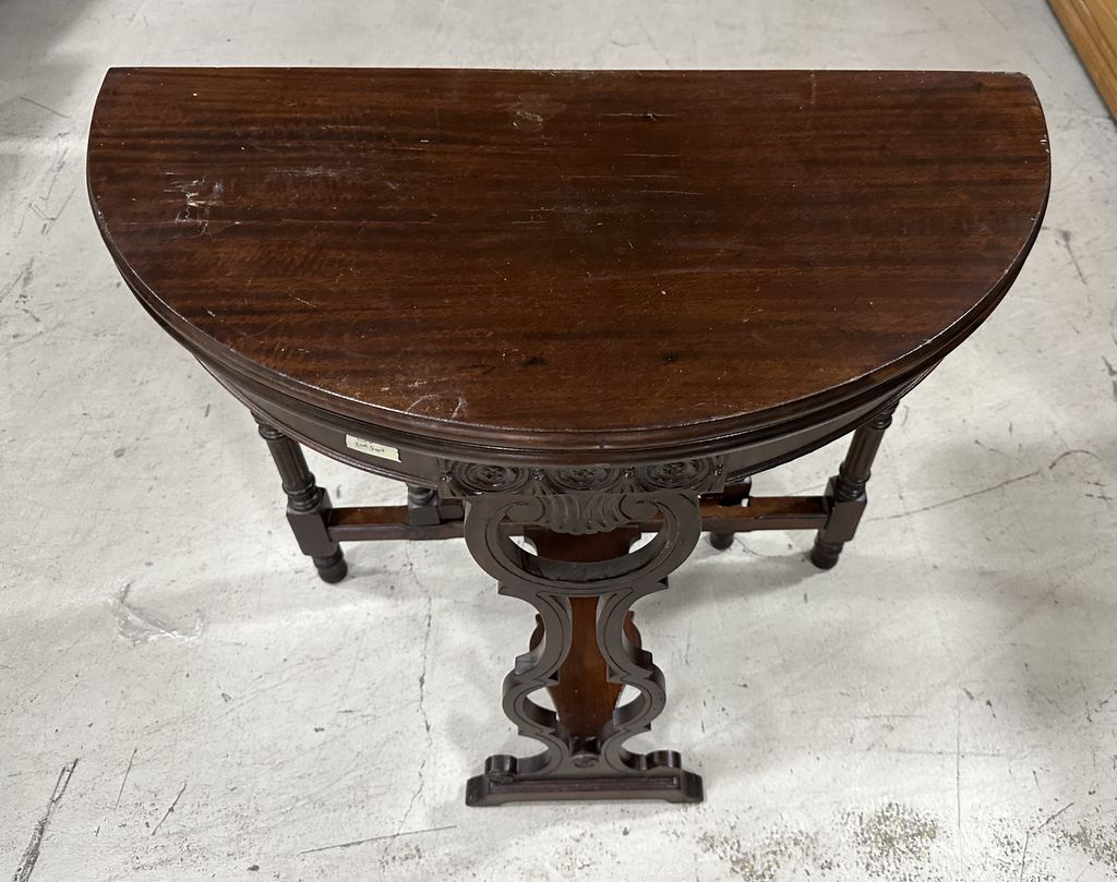 Antique Jacobean Style Game Table, mahogany, gate leg, has some veneer buckling on top, 30"h., 31"w, Antique Jacobean Style Game Table, mahogany, gate leg, has some veneer buckling on top, 30"h., 31"w,
