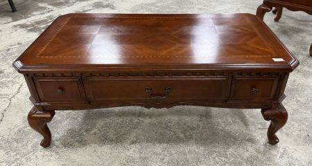 21st Century Traditional Cherry Queen Anne Coffee Table, single drawer, good condition, 19"h., 50"w, 27"d. 21st Century Traditional Cherry Queen Anne Coffee Table, single drawer, good condition, 19"h., 50"w, 27"d.