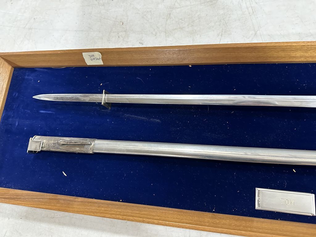 US Air Force Academy Ceremonial Sword, shadow box display, 35"h, Location Front Wood Shelves US Air Force Academy Ceremonial Sword, shadow box display, 35"h, Location Front Wood Shelves