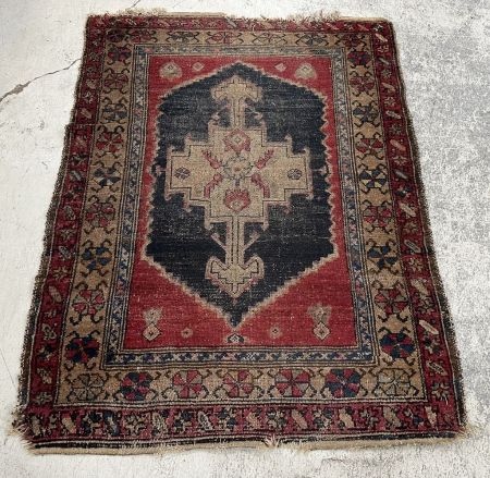 3'6 x 4'10 Semi Antique Persian Wool Rug, fading, aged wear 3'6 x 4'10 Semi Antique Persian Wool Rug, fading, aged wear