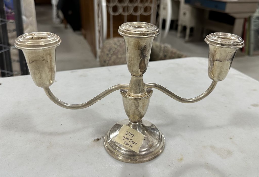 Crosby Weighted Sterling Candle Holder, 6 1/2"h, Location Case Behind Screen Crosby Weighted Sterling Candle Holder, 6 1/2"h, Location Case Behind Screen