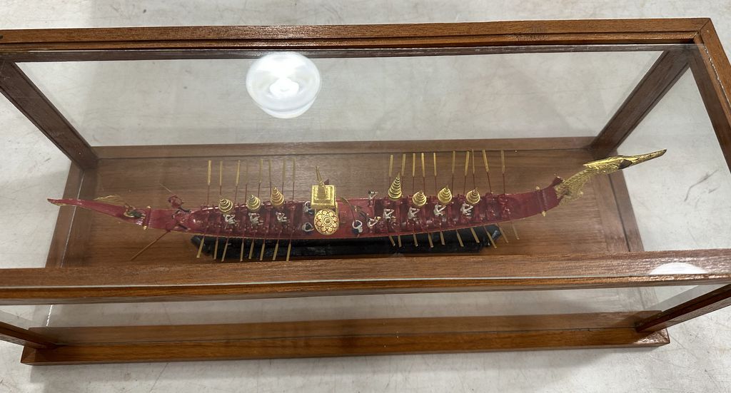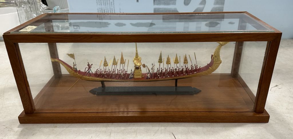 Vintage Thai Royal Barge Suphannahong Model in Display Case, Location Front Shelves Vintage Thai Royal Barge Suphannahong Model in Display Case, Location Front Shelves
