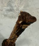 Asian Bone Carved Man and Woman Sculptures, 9"h, each have chips, Location Front Wood Shelves Asian Bone Carved Man and Woman Sculptures, 9"h, each have chips, Location Front Wood Shelves