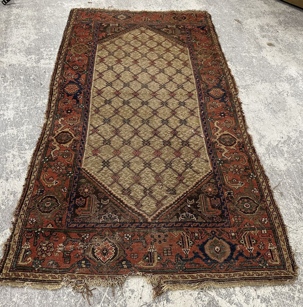 4' x 7'3 Semi Antique Persian Wool Rug, fading, has tears, aged condition 4' x 7'3 Semi Antique Persian Wool Rug, fading, has tears, aged condition