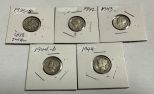 1935-S, 1942, 1943, 1944-D, and 1944 Mercury Dimes, Location safe 1935-S, 1942, 1943, 1944-D, and 1944 Mercury Dimes, Location safe