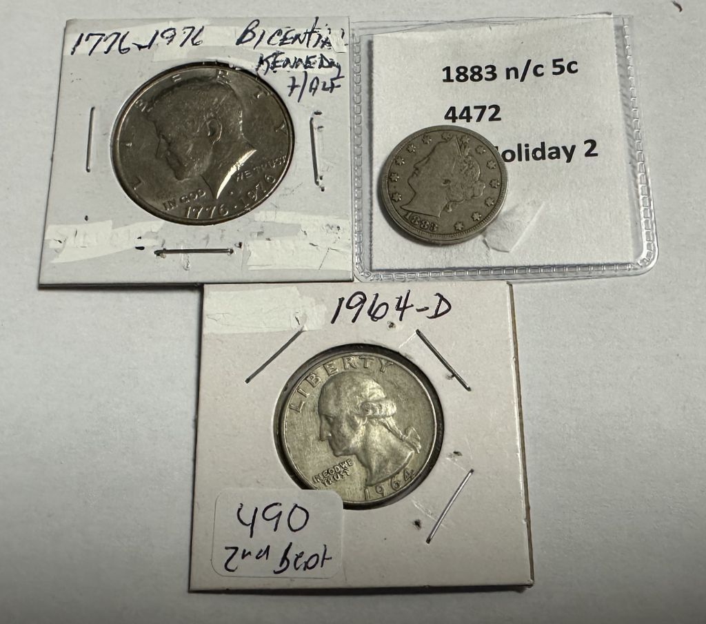 490 1964-D Quarter, 1883 Barber Nickel, and 1976 Kennedy Half Dollar