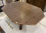 American of Martinsville Oak Dining Table, two leaves, pedestal base, light wear, 29"h., 68"long. 44"w. Location Row 4 American of Martinsville Oak Dining Table, two leaves, pedestal base, light wear, 29"h., 68"long. 44"w. Location Row 4