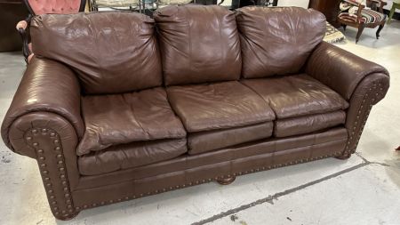 Dark Red Three Cushion Vinyl Leather Sofa, good condition, 7' Dark Red Three Cushion Vinyl Leather Sofa, good condition, 7'