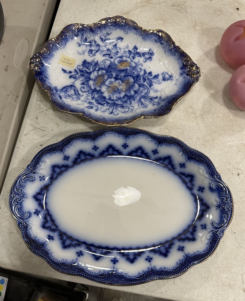 Myott Son & Co C1900 Chataworth Platter and W. Gundly 1890 Platter, Location Back Metal Shelves Myott Son & Co C1900 Chataworth Platter and W. Gundly 1890 Platter, Location Back Metal Shelves