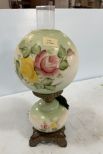 Vintage Hand Painted Glass Globe Lamp, Location Back Metal Shelves Vintage Hand Painted Glass Globe Lamp, Location Back Metal Shelves