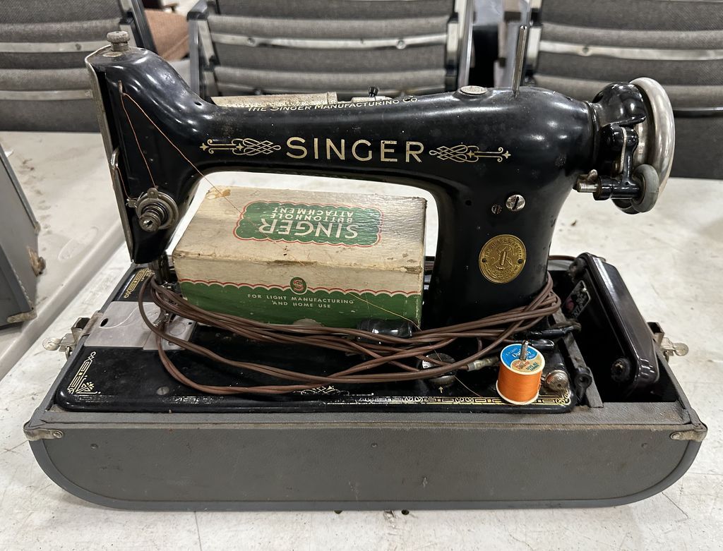 Antique Portable Singer Machine, good condition, Location Back Metal Shelves Antique Portable Singer Machine, good condition, Location Back Metal Shelves