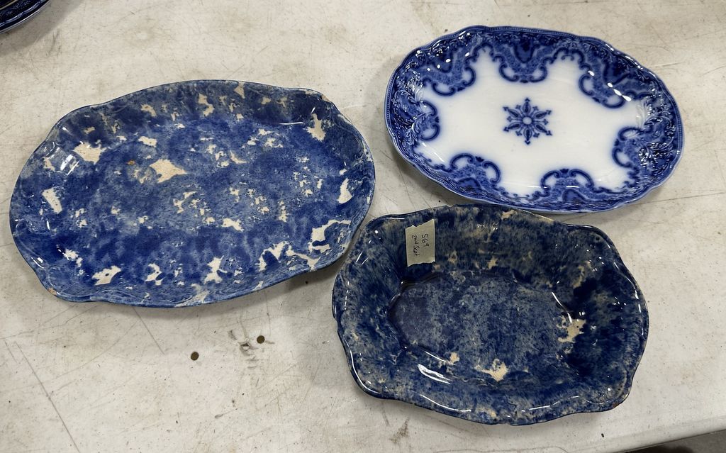 569 Blue Antique Pottery Bowl, Platter, and Flowblue Bowl