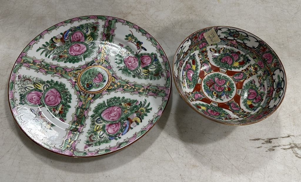 578 Japanese Rose Famillie Porcelain Charger and Bowl