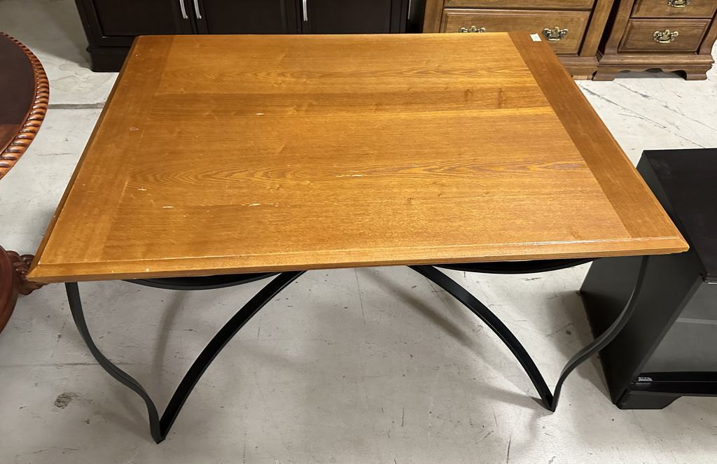 Modern Wood Metal Base Breakfast Table, 28"h., 47"L, 36"w. Location Row 15 Modern Wood Metal Base Breakfast Table, 28"h., 47"L, 36"w. Location Row 15