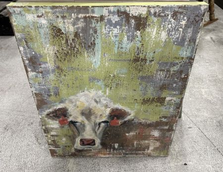 Signed Painting of Cow, unframed, 30"h., 24"w, Signed Painting of Cow, unframed, 30"h., 24"w,