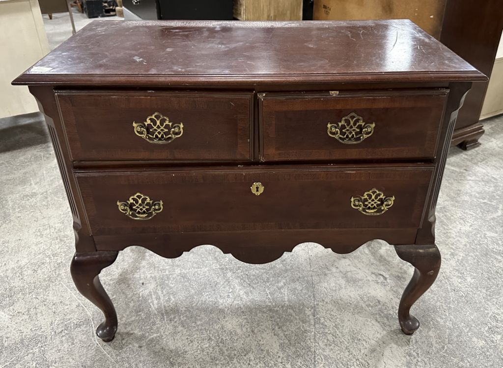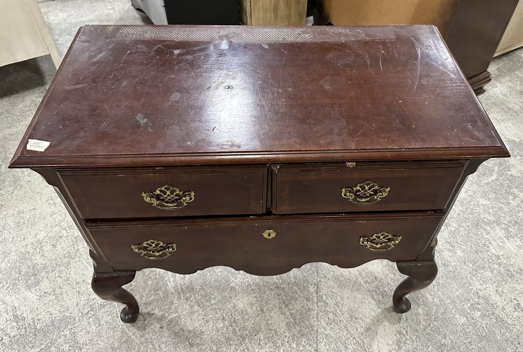Late 20th Century Cherry Queen Anne Low Boy, 31"h., 37"w, has finish wear Late 20th Century Cherry Queen Anne Low Boy, 31"h., 37"w, has finish wear