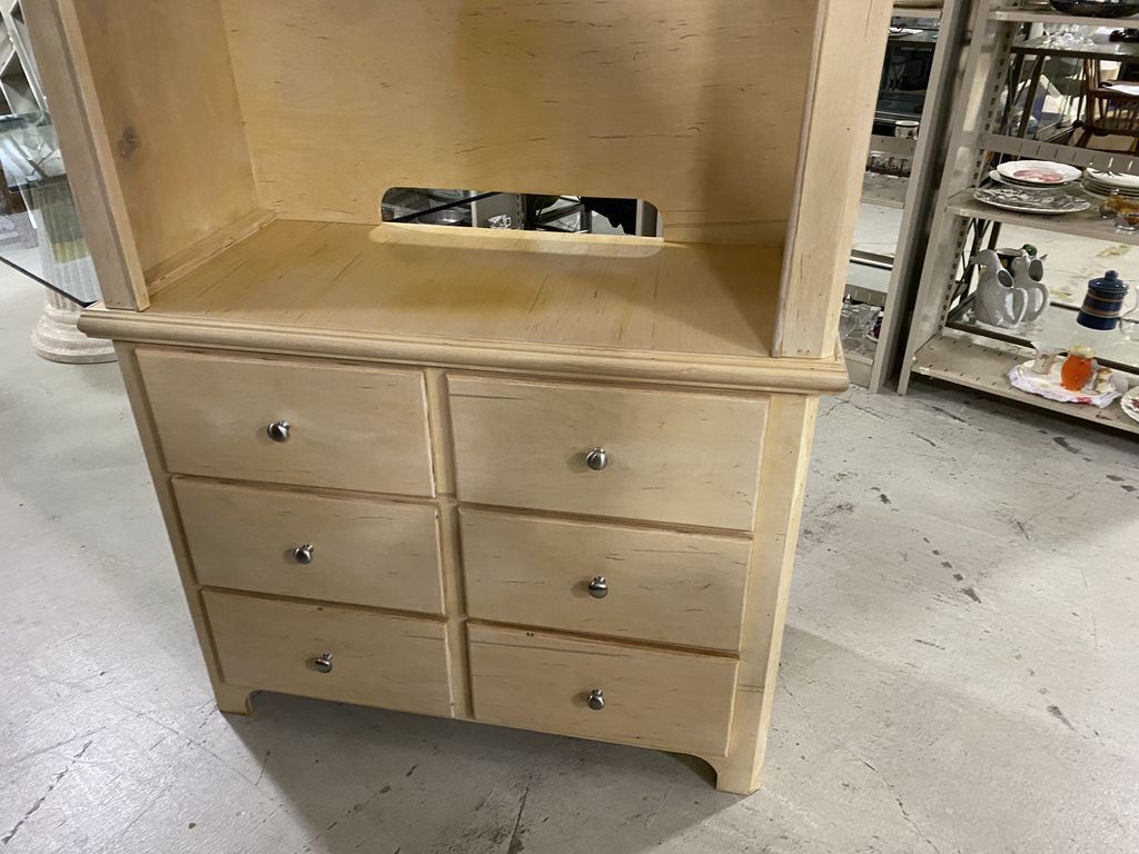 Large Modern TV Entertainment Cabinet, 6 drawers, blonde finish, 90"h., 42"w. Location Row 6 Large Modern TV Entertainment Cabinet, 6 drawers, blonde finish, 90"h., 42"w. Location Row 6