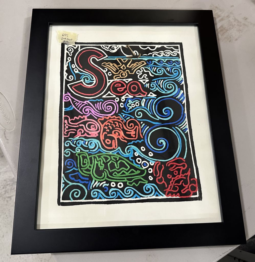 framed, hand colored by an artist, 16"h., 13"w, Location Front Wood Shelves framed, hand colored by an artist, 16"h., 13"w, Location Front Wood Shelves