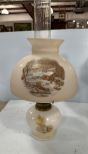 Vintage Aladdin White Glass Oil Lamp, 21"h, Location Back Metal Shelves Vintage Aladdin White Glass Oil Lamp, 21"h, Location Back Metal Shelves