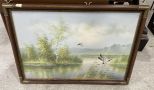Van Webber Painting of Mallard Ducks, on canvas, framed, 27h.,39"w. Van Webber Painting of Mallard Ducks, on canvas, framed, 27h.,39"w.