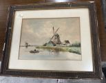 Signed Watercolor of Mills, on paper, signed, matted, framed, 13"h., 16"w, Location Back Metal Shelves Signed Watercolor of Mills, on paper, signed, matted, framed, 13"h., 16"w, Location Back Metal Shelves