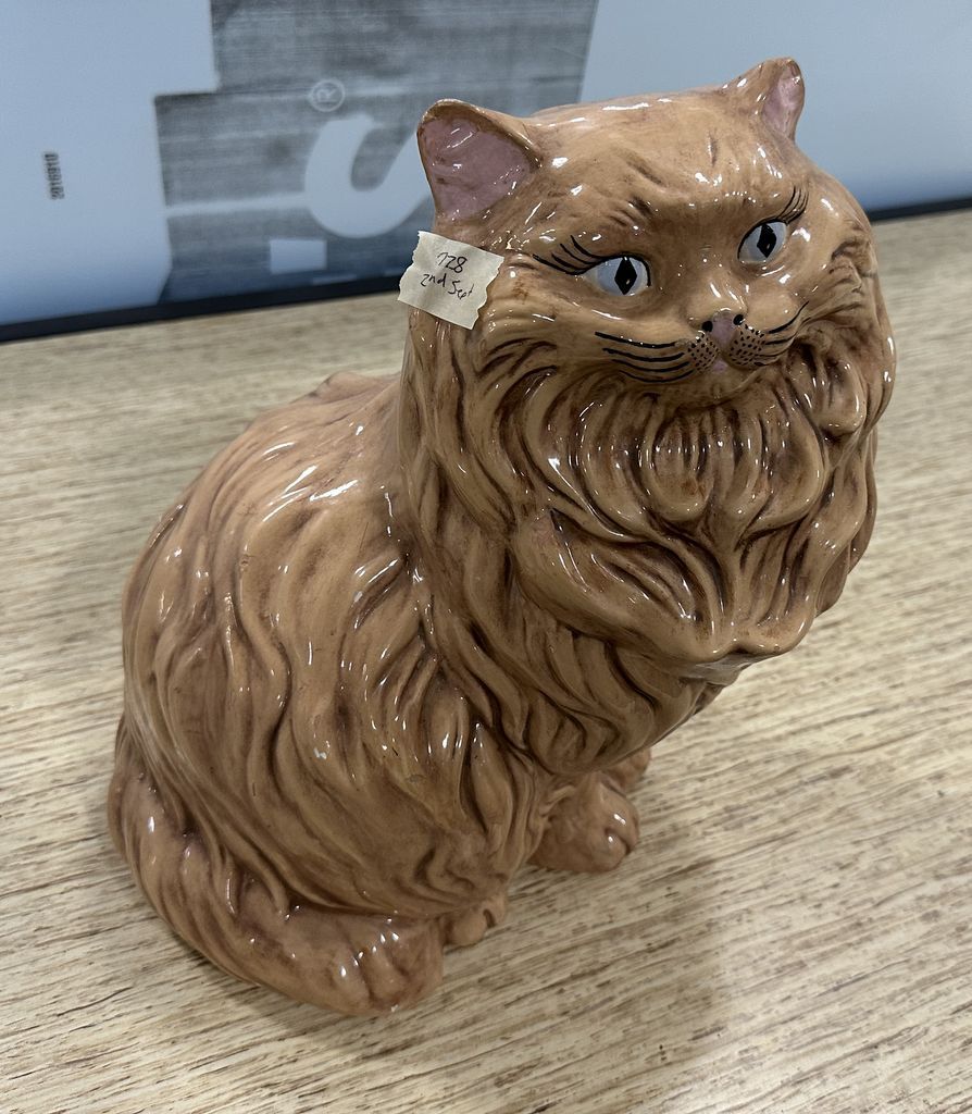 Vintage Ceramic Hand Crafted Cat Sculpture, small chips on ear, 14"h, Location Back Metal Shelves Vintage Ceramic Hand Crafted Cat Sculpture, small chips on ear, 14"h, Location Back Metal Shelves