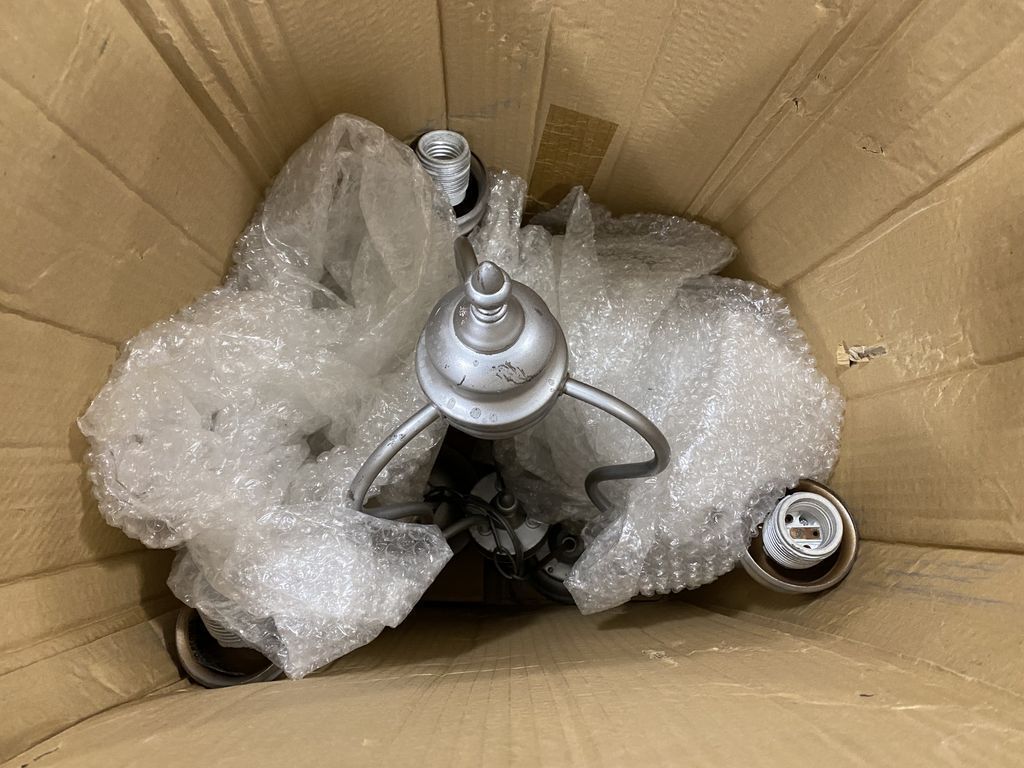 Modern Three Arm Hanging Light Fixture, Location Back Metal Shelves Modern Three Arm Hanging Light Fixture, Location Back Metal Shelves
