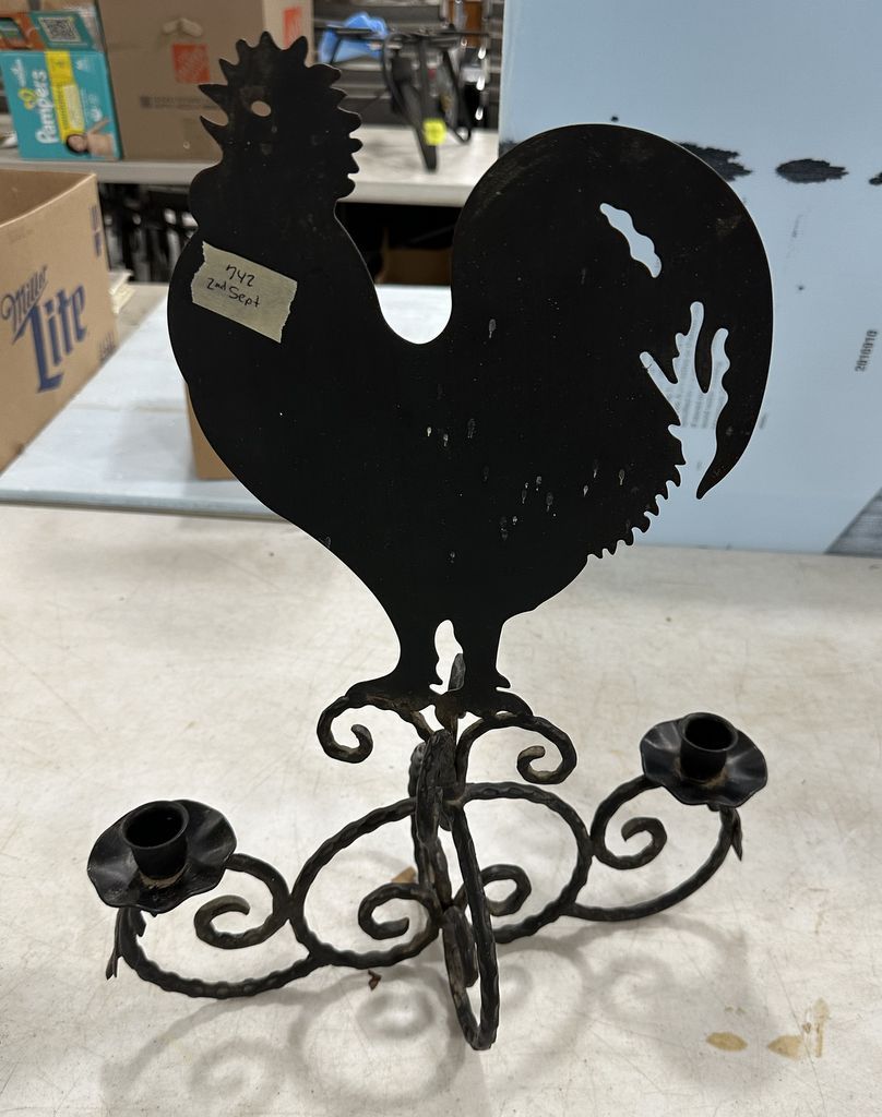 Metal Crafted Rooster Candle Holder, 19"H, Location Back Metal Shelves Metal Crafted Rooster Candle Holder, 19"H, Location Back Metal Shelves