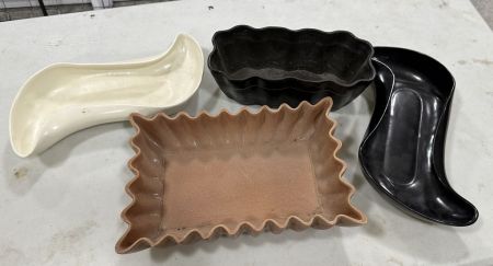 Four Pieces of Red Wing Pottery Dishes, Location Right Metal Shelves Four Pieces of Red Wing Pottery Dishes, Location Right Metal Shelves