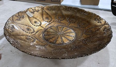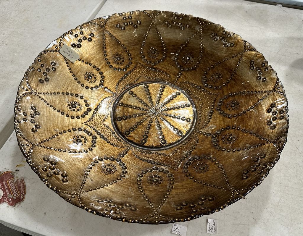 Large Glass Center Piece Bowl, Location Back Metal Shelves Large Glass Center Piece Bowl, Location Back Metal Shelves