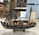 Decorative Wood Model Ship, Location Back Metal Shelves Decorative Wood Model Ship, Location Back Metal Shelves