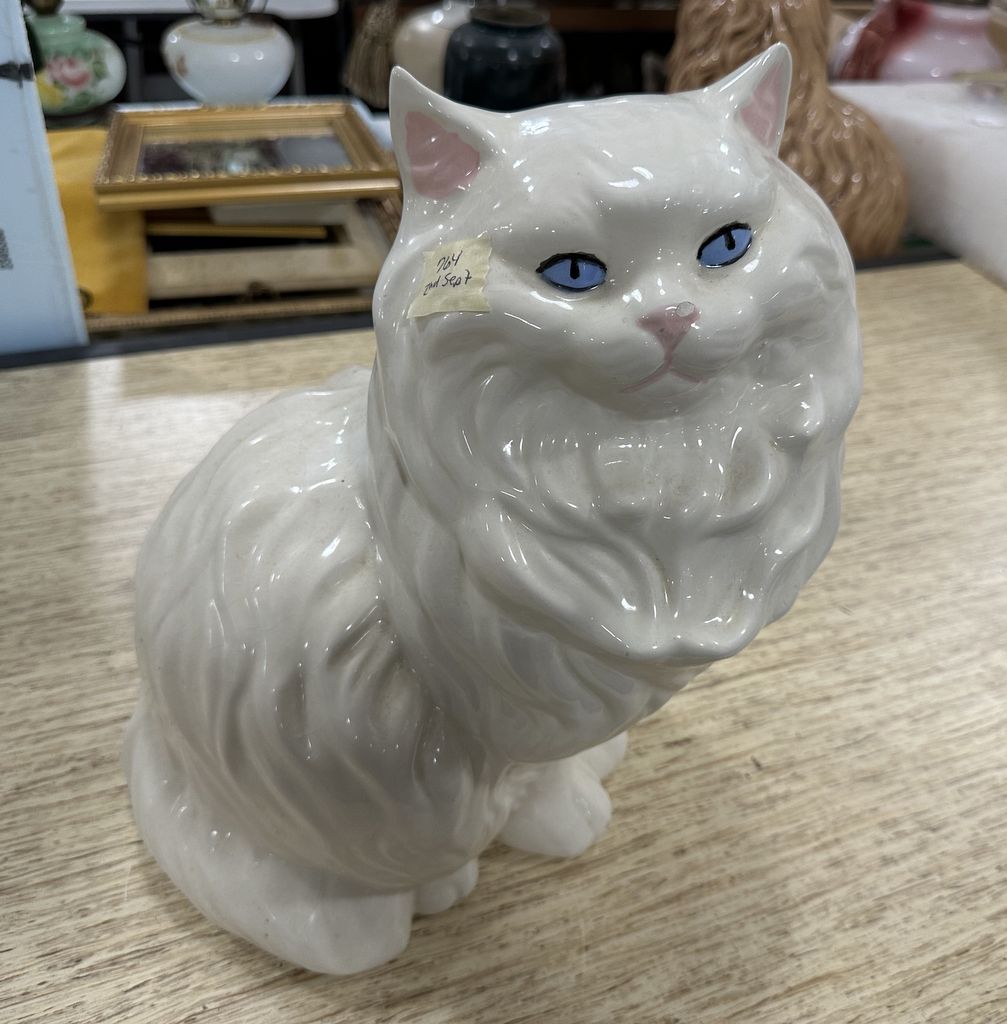 Antique Ceramic Hand Crafted Cat Sculpture, 14"h, Location Back Metal Shelves Antique Ceramic Hand Crafted Cat Sculpture, 14"h, Location Back Metal Shelves