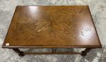 Drexel Co. Oak Coffee Table, has worn spots on top, 17'h. 40"w. Location Center Drexel Co. Oak Coffee Table, has worn spots on top, 17'h. 40"w. Location Center