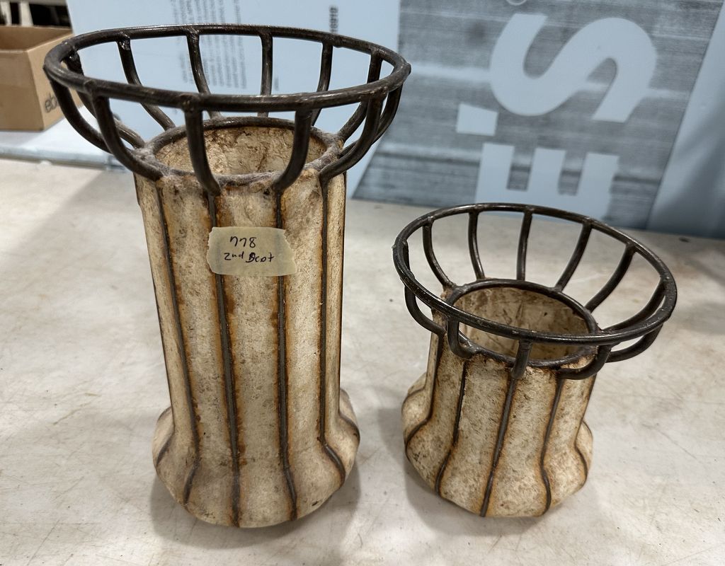 Two Decorative Candle Holders, Location Back Metal Shelves Two Decorative Candle Holders, Location Back Metal Shelves