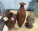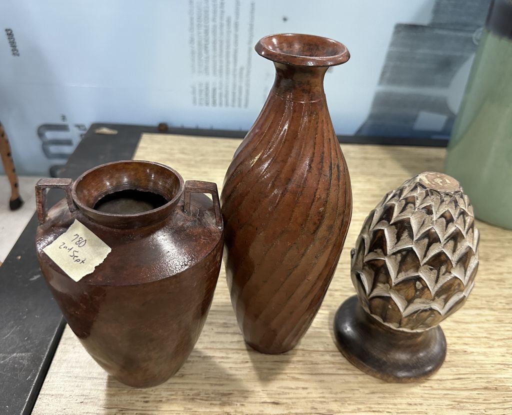 780 Two Metal Rustic Vases and Pineapple Obelisk