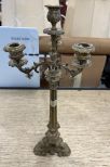 Vintage Brass Candelabra, 21"h, Location Right Metal Shelves Vintage Brass Candelabra, 21"h, Location Right Metal Shelves