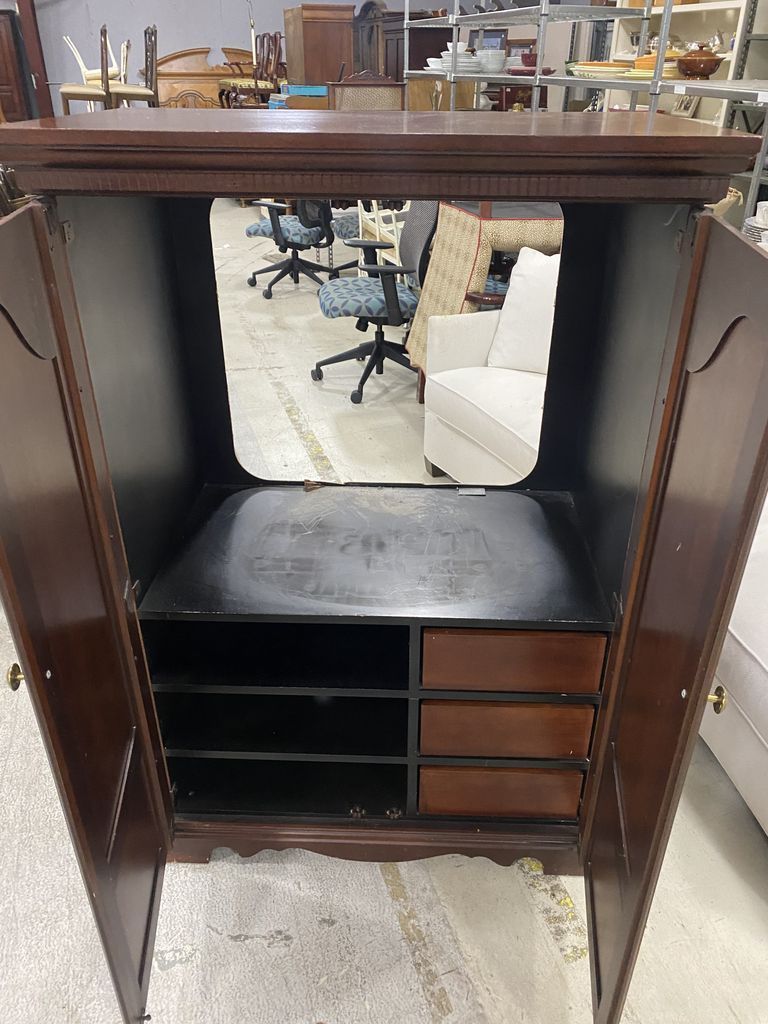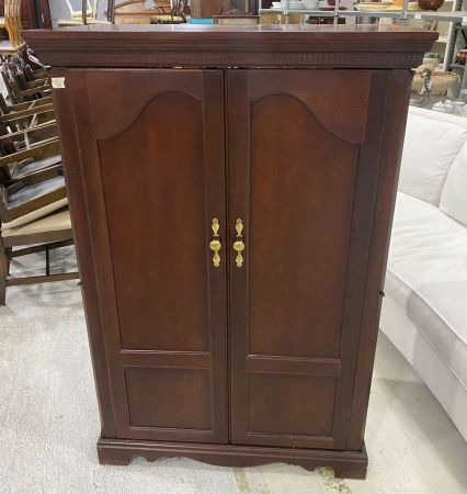 Modern Two Door Cherry Entertainment Armoire, 55"h., 37"w. Location Row 6 Modern Two Door Cherry Entertainment Armoire, 55"h., 37"w. Location Row 6