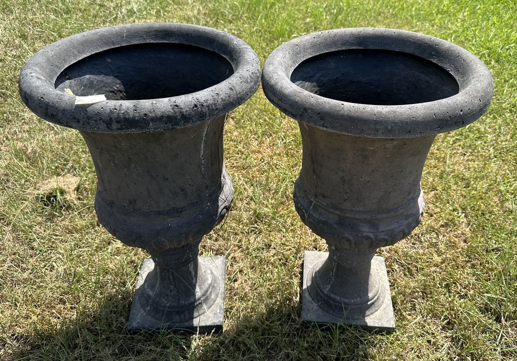 Pair of Fiberglass Outdoor Plant Urns Pair of Fiberglass Outdoor Plant Urns