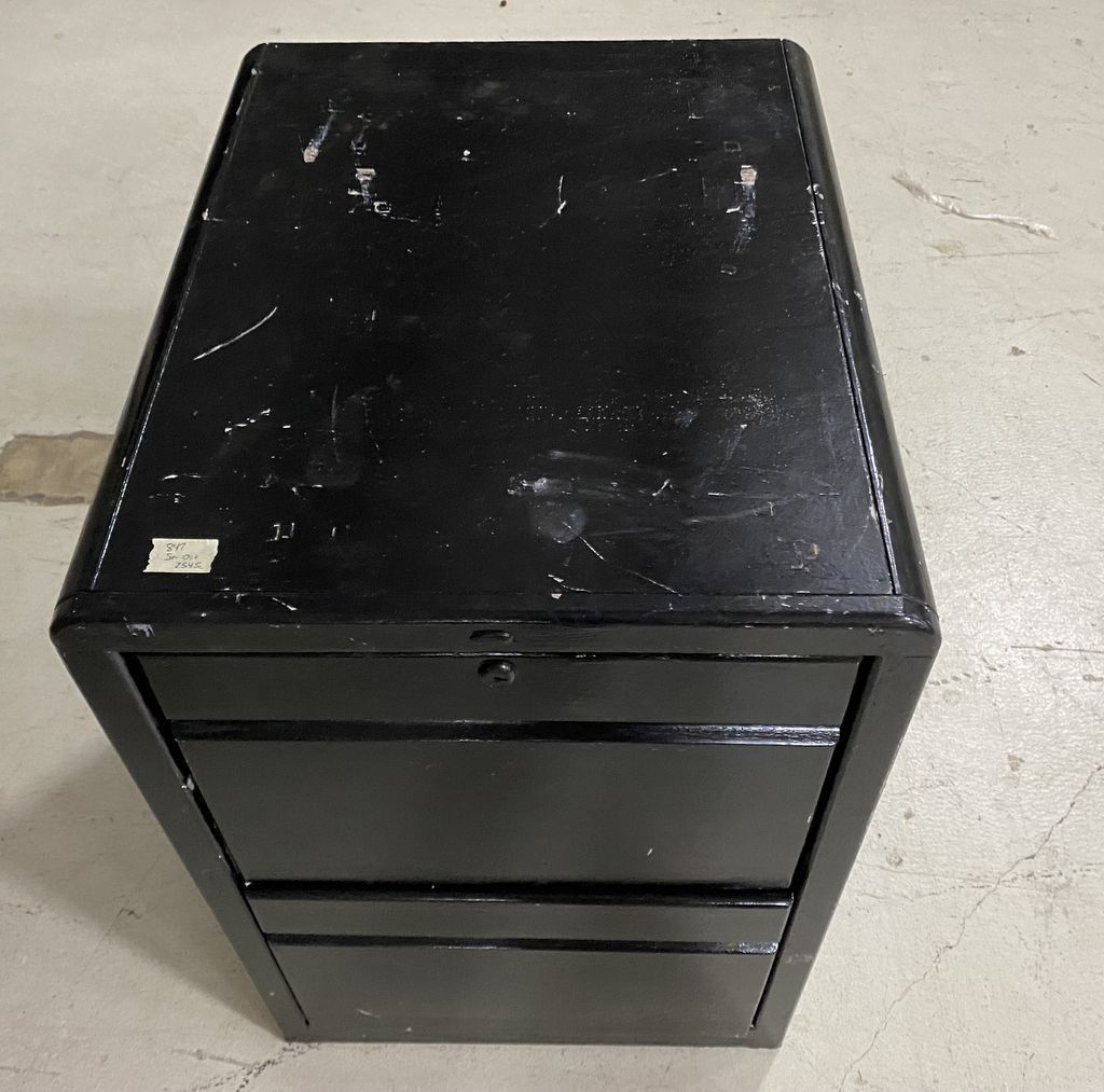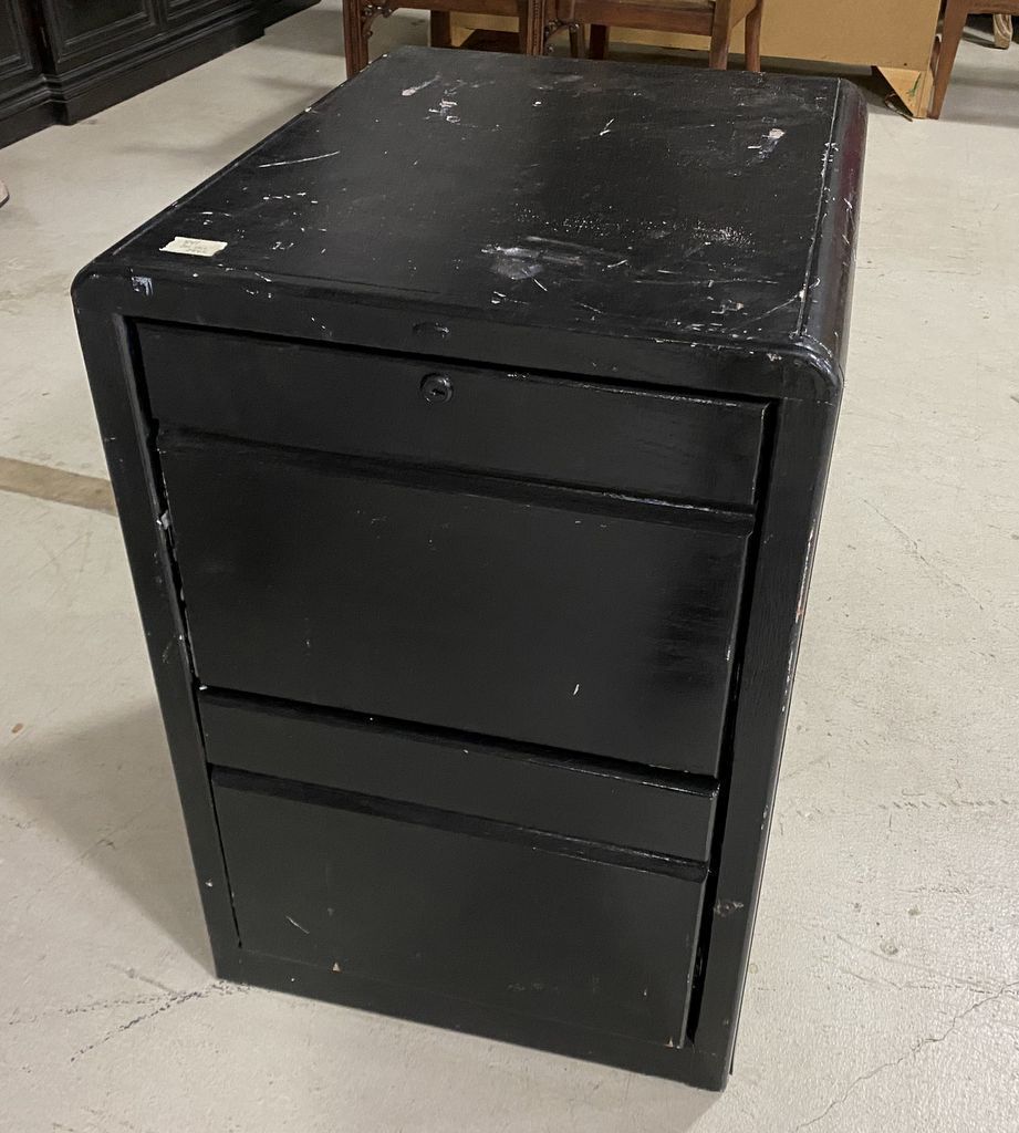 Black Painted File Cabinet, has wear, needs some work, 30"h., 20"w. Location Row 2 Black Painted File Cabinet, has wear, needs some work, 30"h., 20"w. Location Row 2