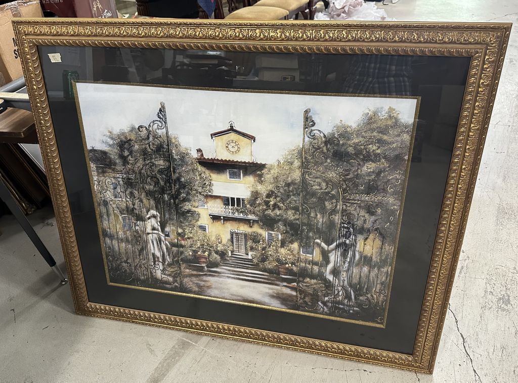 Large Print of Home Entrance, matted, framed, 43"h., 53"w. Location Right wall Large Print of Home Entrance, matted, framed, 43"h., 53"w. Location Right wall