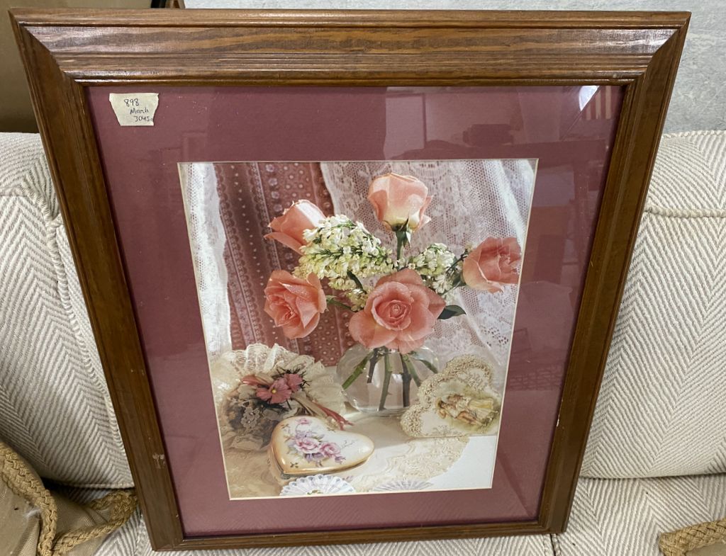 Framed Rose Scene Print, matted frame is 25"h., 20"w. Framed Rose Scene Print, matted frame is 25"h., 20"w.