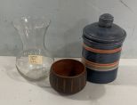 Flower Vase 7", Canister 6" and Ceramic Bowl 4" dia. Loc Glass Shelves by the Office Flower Vase 7", Canister 6" and Ceramic Bowl 4" dia. Loc Glass Shelves by the Office