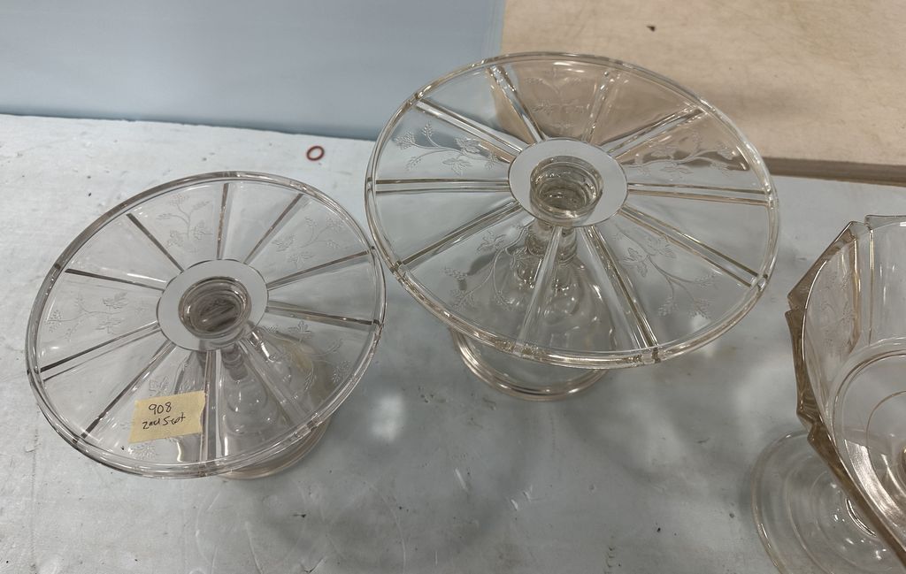 Victorian Rival Spring by Bryce Higbee & Co. Cake Stands and Compote, Location Back Metal Shelves Victorian Rival Spring by Bryce Higbee & Co. Cake Stands and Compote, Location Back Metal Shelves