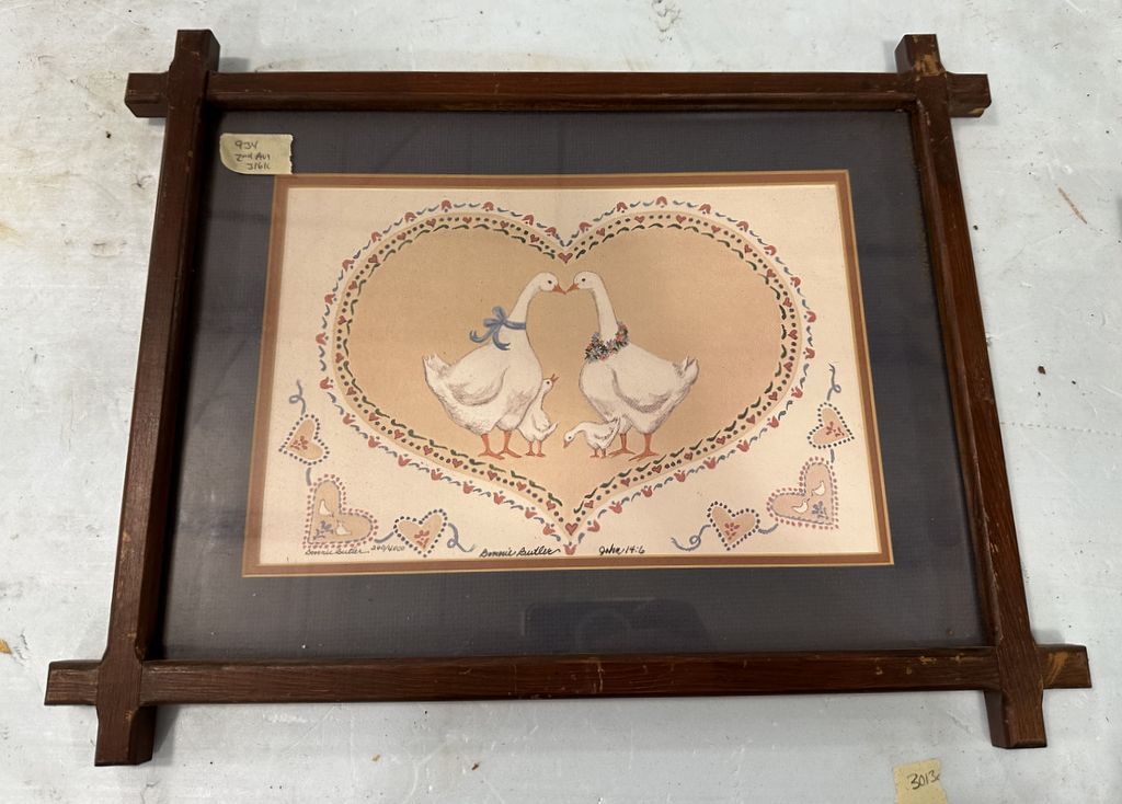 Framed Print of Ducks, wood framed, 19"w, Location Back Metal Shelves Framed Print of Ducks, wood framed, 19"w, Location Back Metal Shelves