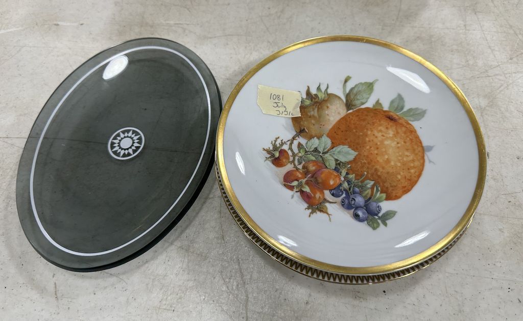 6" Collector Plates and Glass Platter, Location Back Metal Shelves 6" Collector Plates and Glass Platter, Location Back Metal Shelves