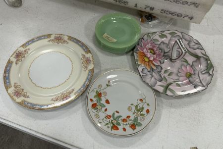 1147 Sandwich Server, Porcelain Plates, and Jadeite Saucers
