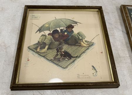 Norman Rockwell Framed Print, 13"h., 12"w, Location Front Wood Shelves Norman Rockwell Framed Print, 13"h., 12"w, Location Front Wood Shelves