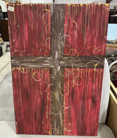 Signed Rachel Painting of Cross, 36"h., 24"w.Location Right Wall Signed Rachel Painting of Cross, 36"h., 24"w.Location Right Wall
